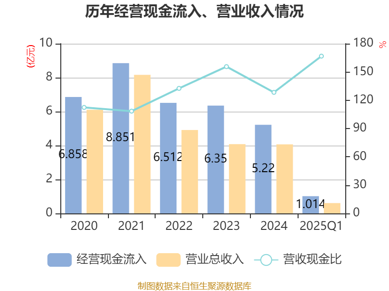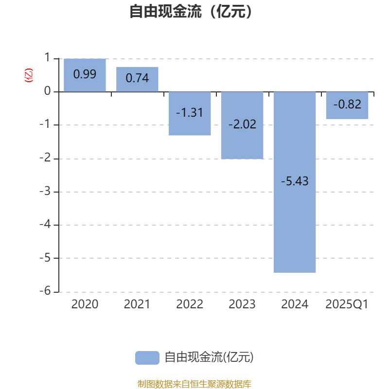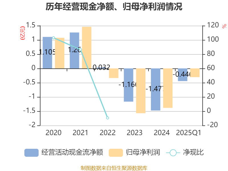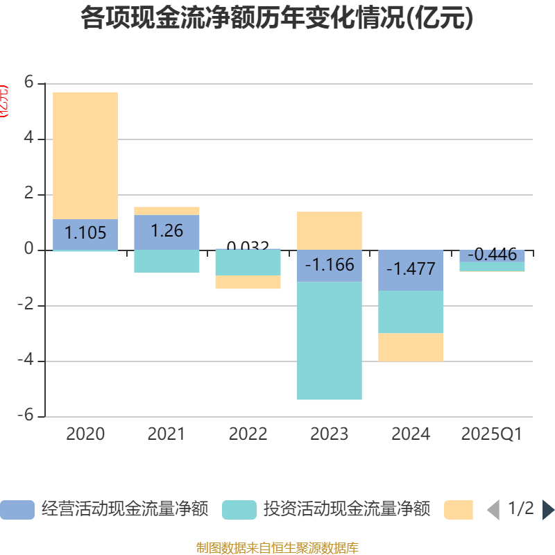 截至2025年一季度末,公司经营活动现金流净额为-4458.07万元,同比增加617.64万元;筹资活动现金流净额-197.78万元,同比增加6342.57万元;投资活动现金流净额-3313.27万元,上年同期为-1197.9万元。