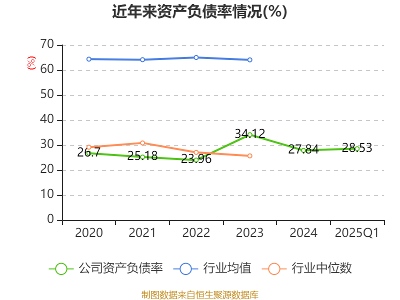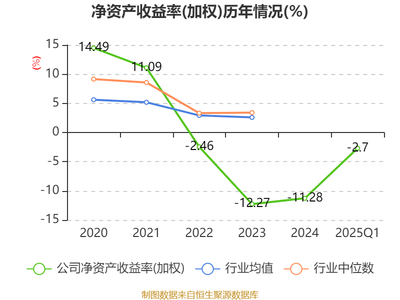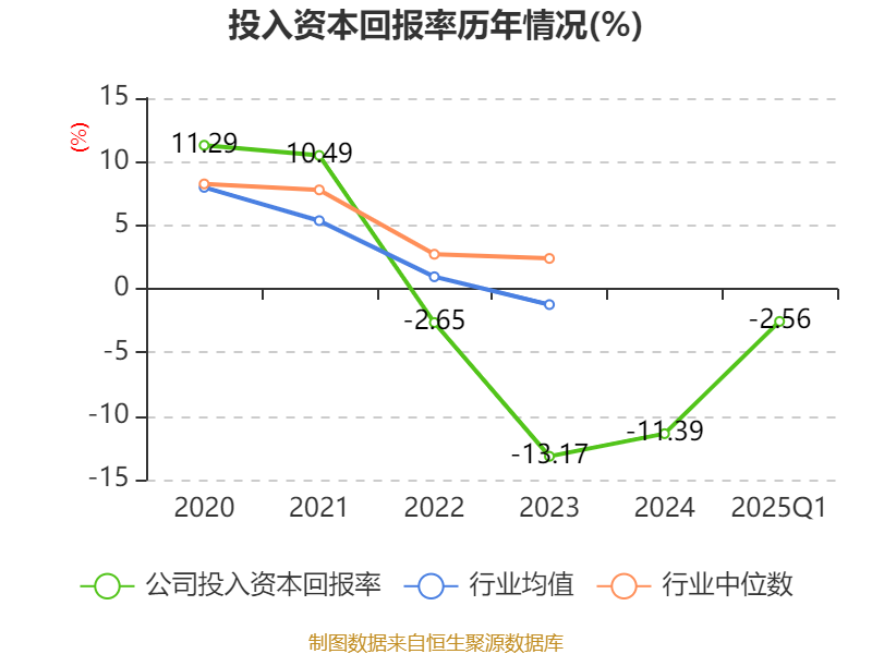 盈利能力方面, 2025年一季度公司加权平均净资产收益率为-2.7%,同比下降1.45个百分点。公司2025年第一季度投入资本回报率为-2.56%,较上年同期下降1.29个百分点。