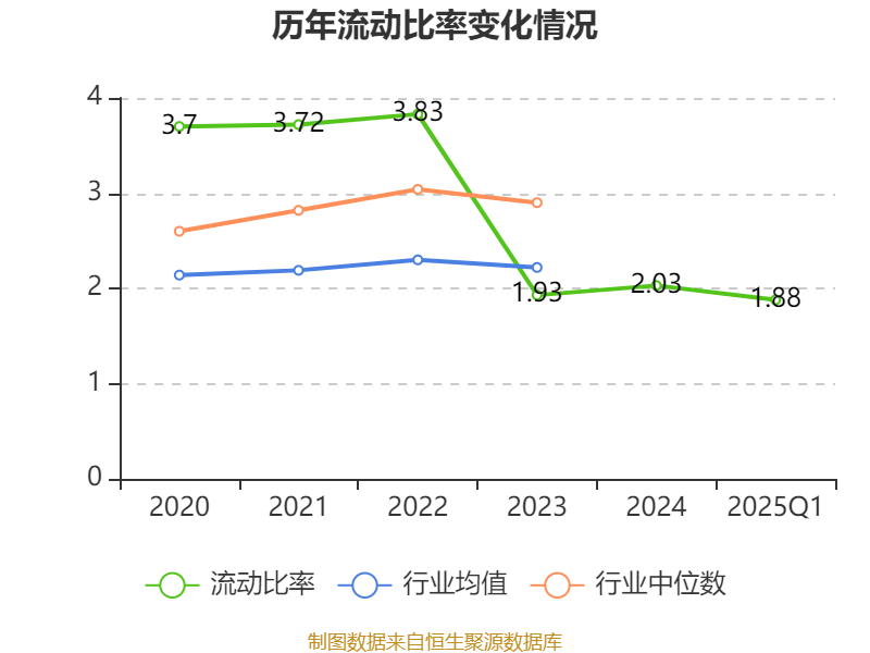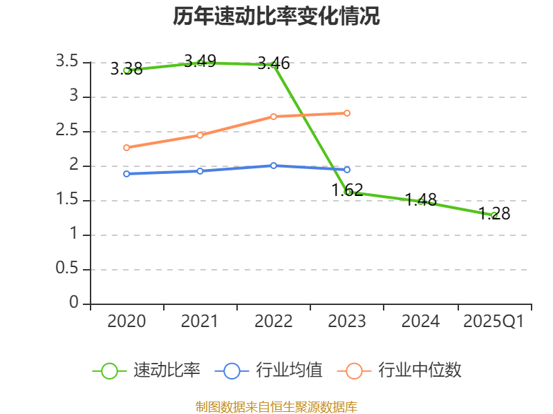 2025年第一季度,公司流动比率为1.88,速动比率为1.28。