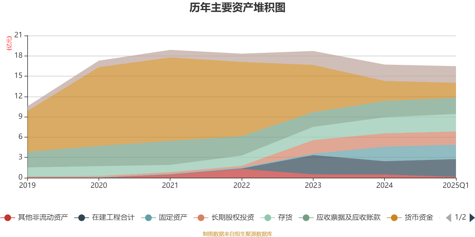 资产重大变化方面,截至2025年一季度末,公司货币资金较上年末减少26.01%,占公司总资产比重下降4.43个百分点;在建工程合计较上年末增加33.37%,占公司总资产比重上升4.14个百分点;其他非流动资产较上年末减少72.9%,占公司总资产比重下降2.06个百分点;存货较上年末增加9.63%,占公司总资产比重上升1.58个百分点。