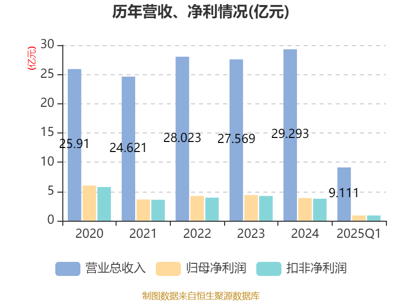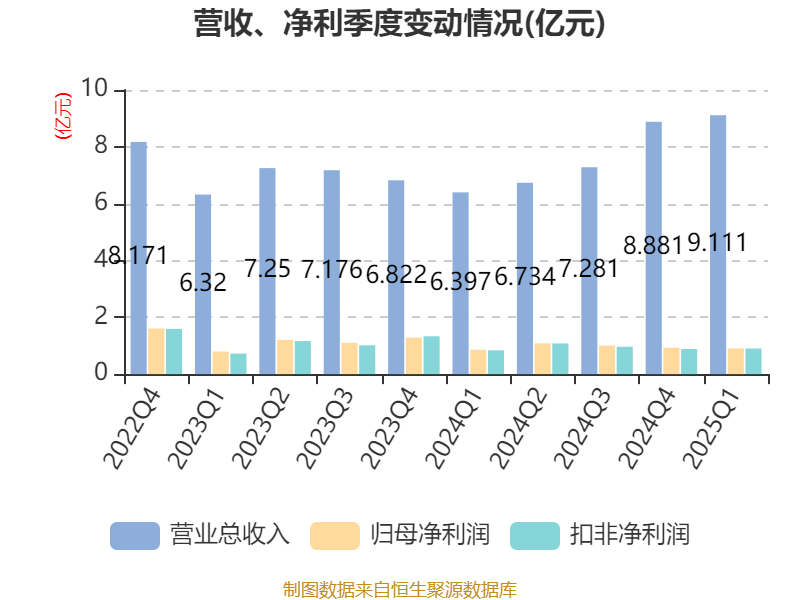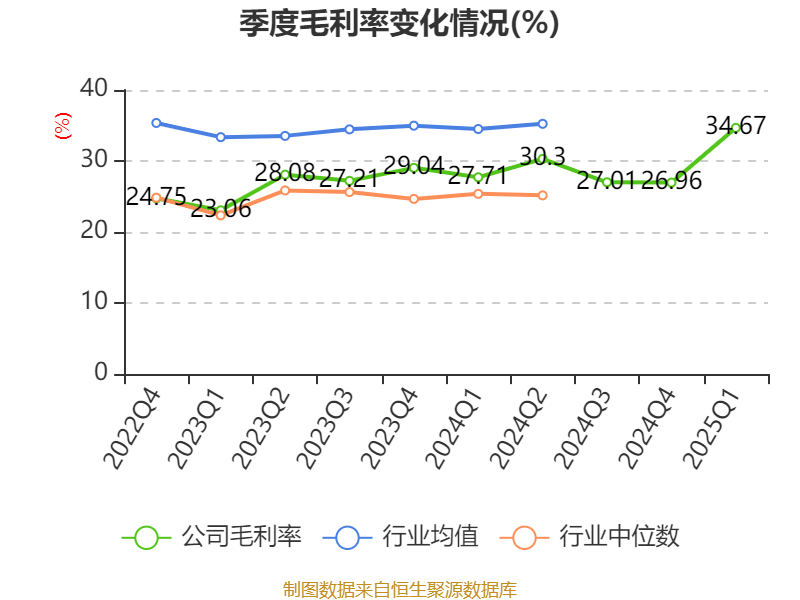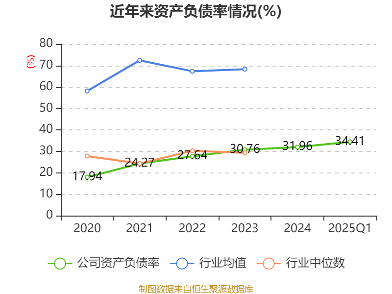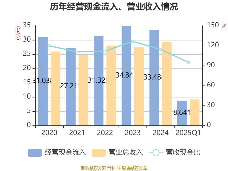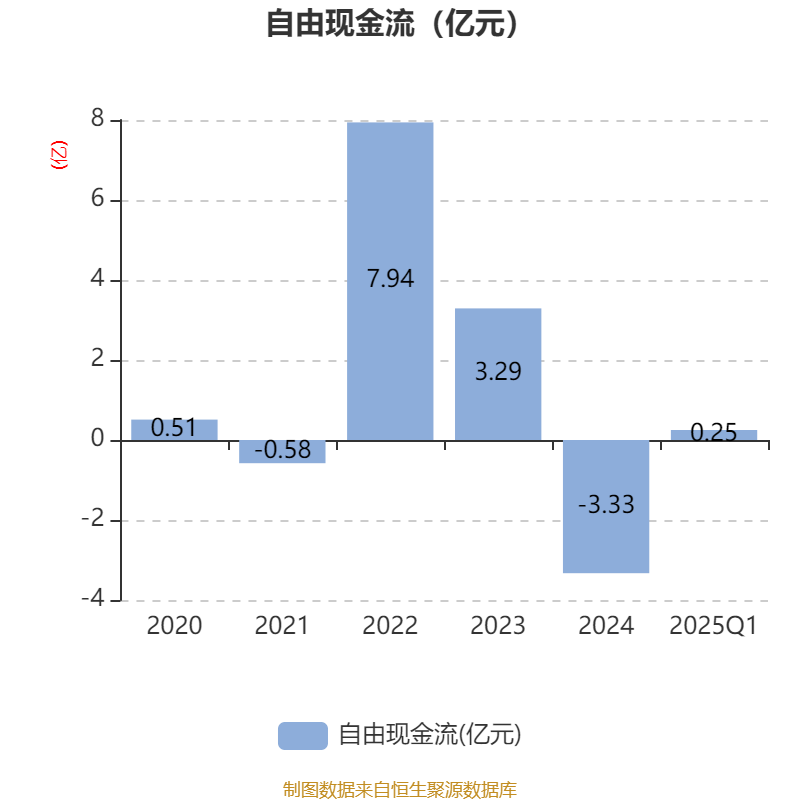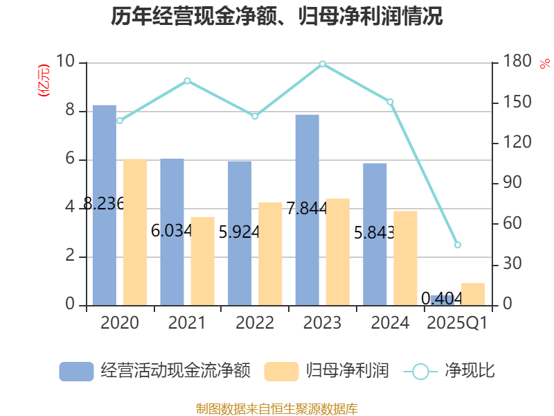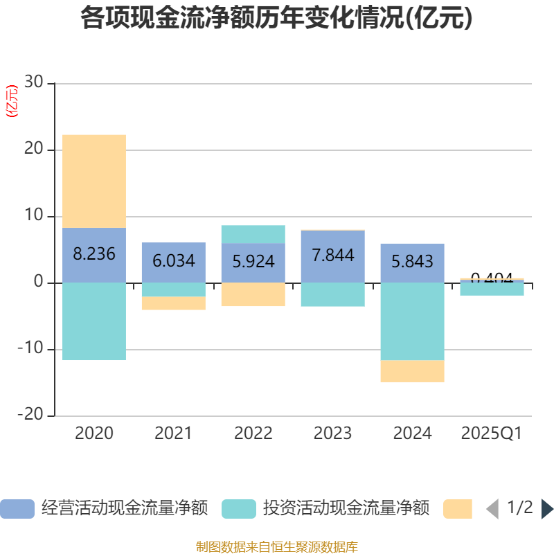 截至2025年一季度末,公司经营活动现金流净额为4039.03万元,同比增加1.35亿元;筹资活动现金流净额2405.16万元,同比增加1.12亿元;投资活动现金流净额-1.96亿元,上年同期为-1.03亿元。