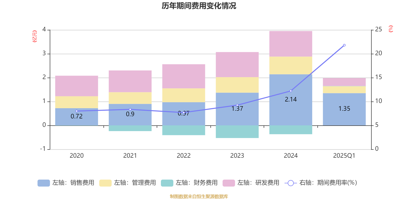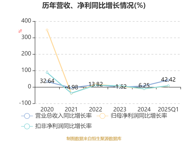 资产重大变化方面,截至2025年一季度末,公司货币资金较上年末减少9.54%,占公司总资产比重下降4.32个百分点;应收票据及应收账款较上年末增加148.9%,占公司总资产比重上升3.76个百分点;商誉占公司总资产的2.28%,上年末为0;其他流动资产较上年末减少64.6%,占公司总资产比重下降1.97个百分点。