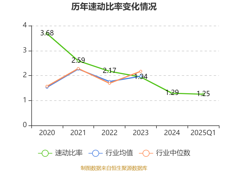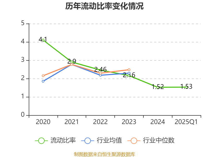 2025年第一季度,公司流动比率为1.53,速动比率为1.25。
