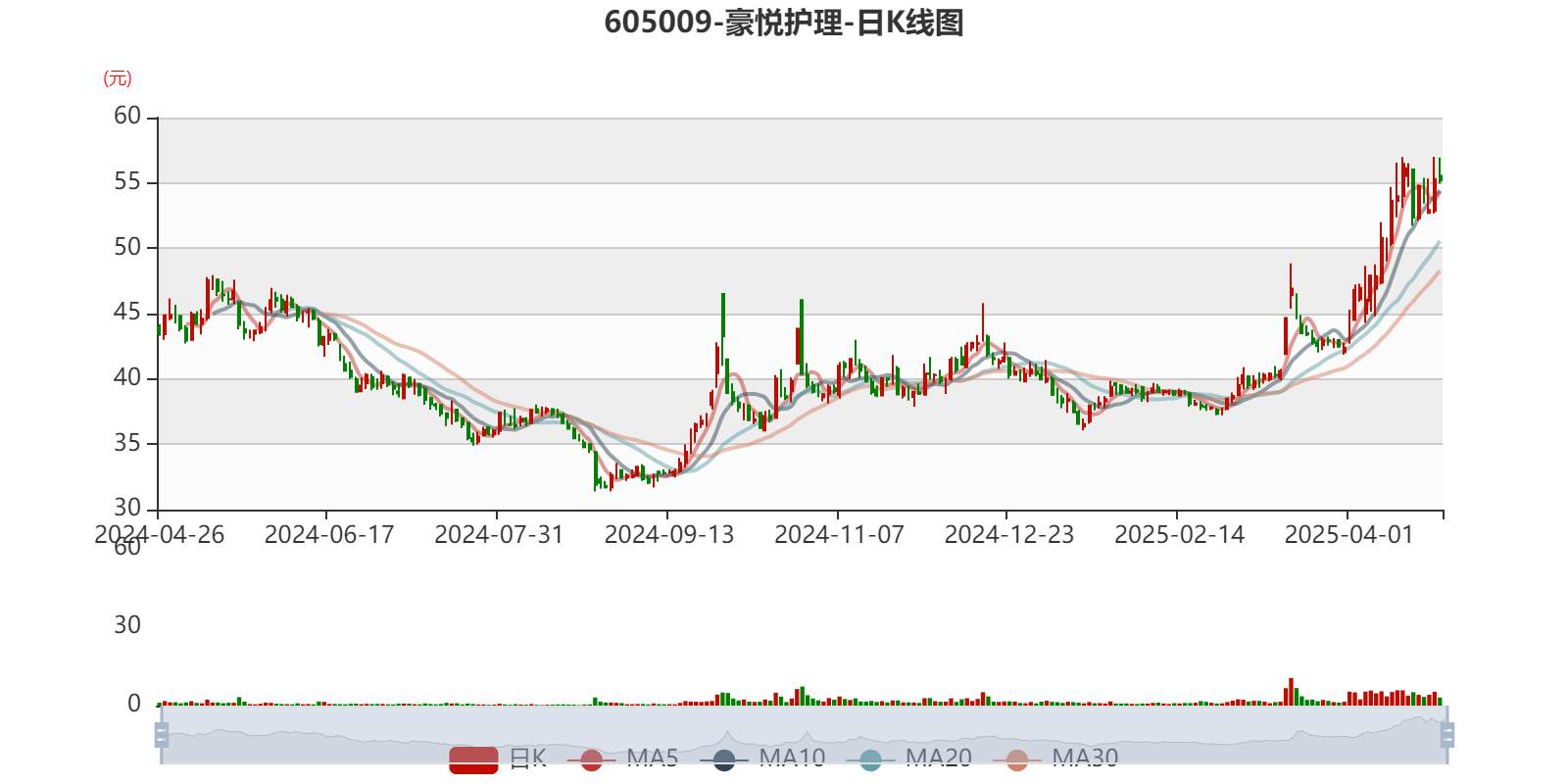 以4月25日收盘价计算,豪悦护理目前市盈率(TTM)约为21.7倍,市净率(LF)约2.51倍,市销率(TTM)约2.66倍。