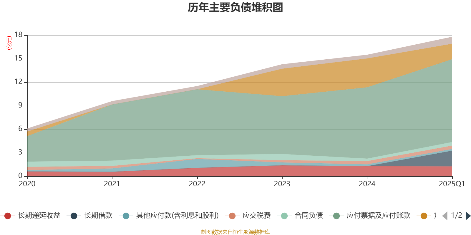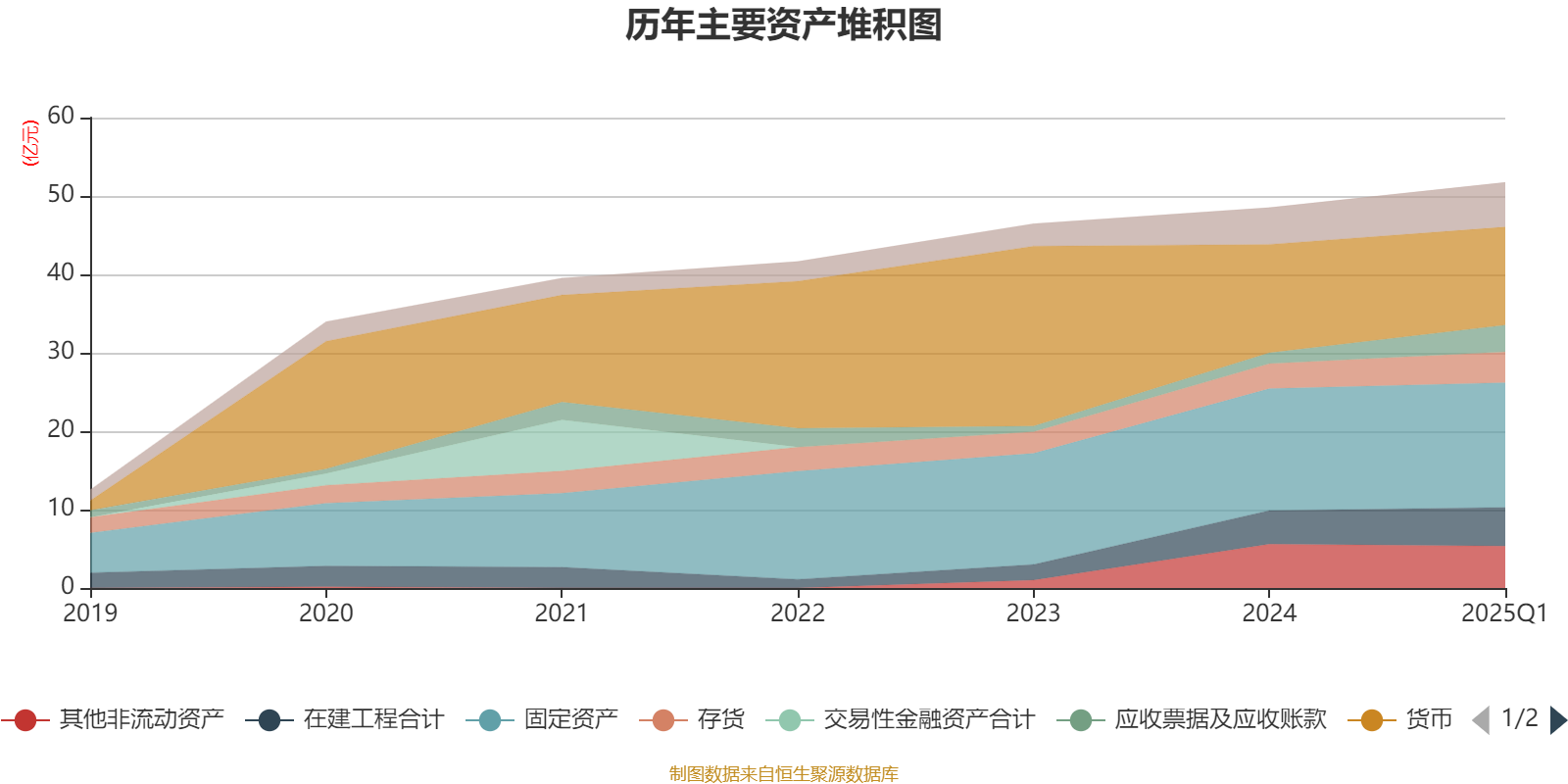 负债重大变化方面,截至2025年一季度末,公司长期借款占公司总资产的3.87%,上年末为0;短期借款较上年末减少46.43%,占公司总资产比重下降3.78个百分点;应付票据及应付账款较上年末增加16.17%,占公司总资产比重上升1.68个百分点;其他流动负债较上年末增加1564.84%,占公司总资产比重上升0.6个百分点。