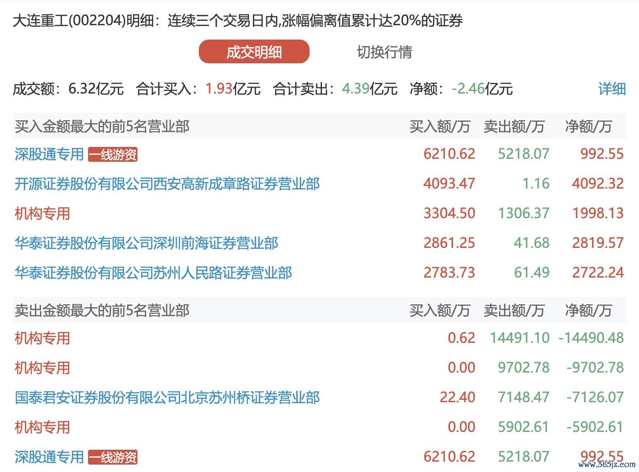 大连重工今日涨停 三机构专用席位净卖出2.68亿元大连重工今日涨停 三机构专用席位净卖出2.68亿元