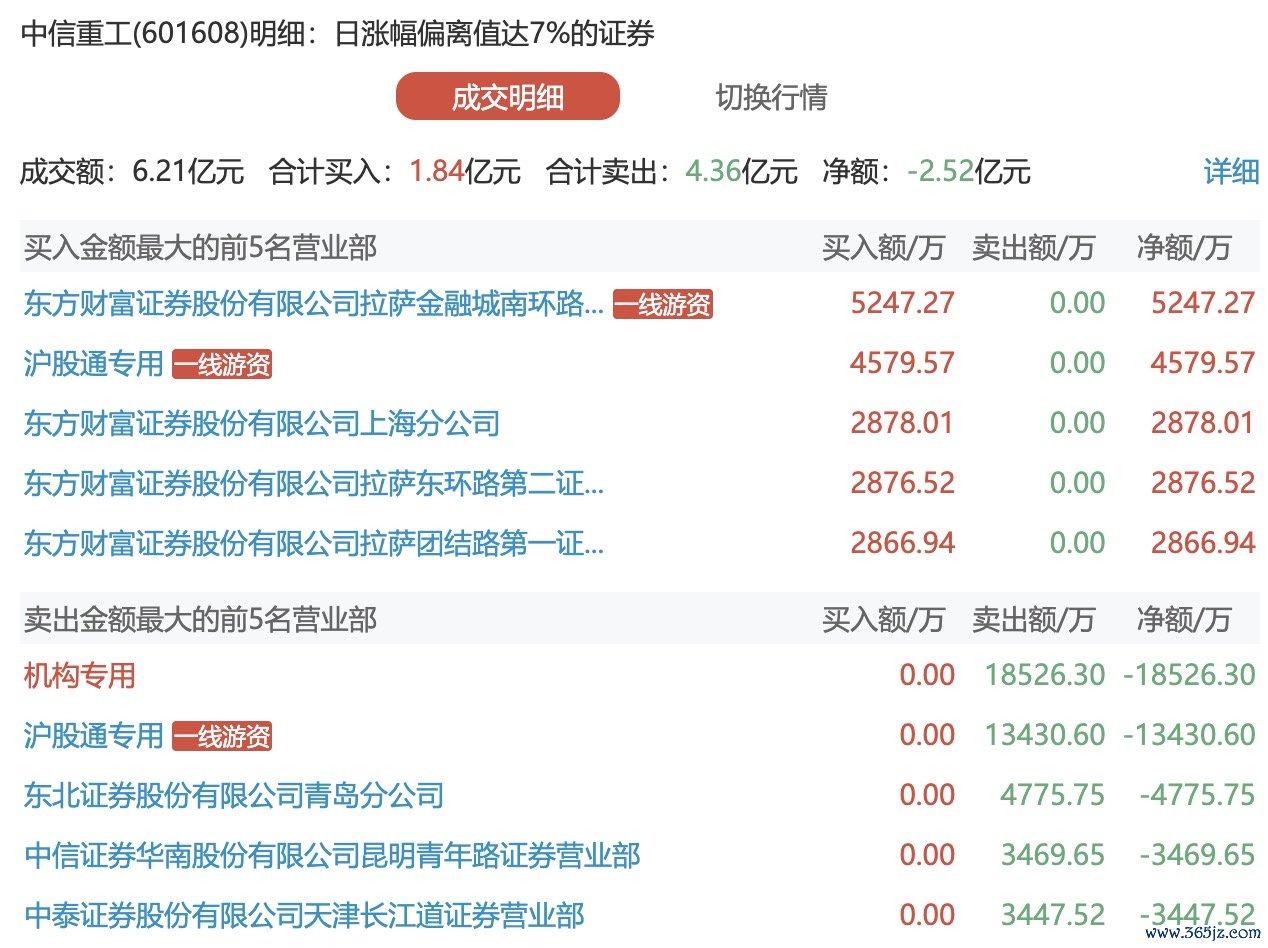 中信重工今日涨停 一机构专用席位净卖出1.85亿元中信重工今日涨停 一机构专用席位净卖出1.85亿元